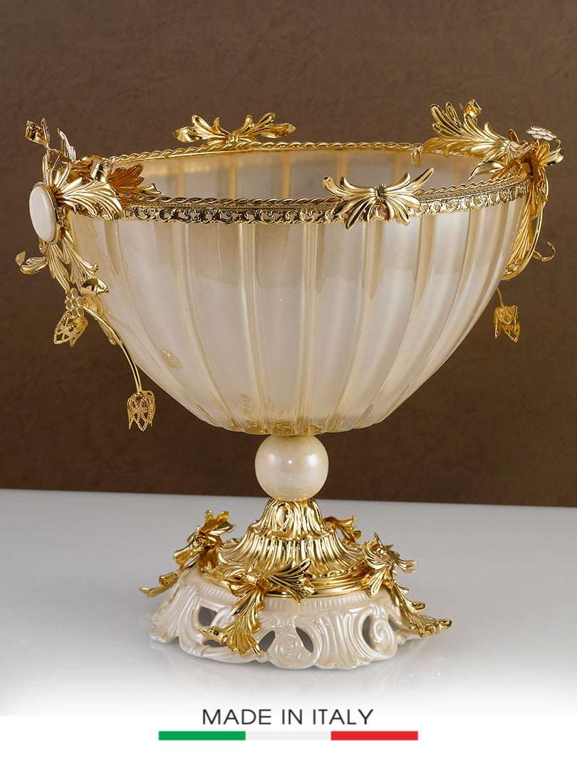 Khay trang trí bằng sứ thuỷ tinh dát đồng – CENTROTAVOLA PRIMAVERA, kích thước 35X21X30H, hiệu Caroline